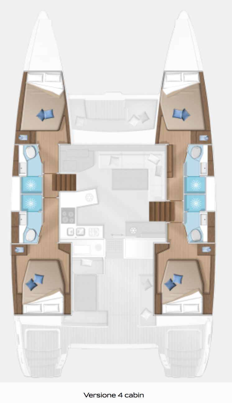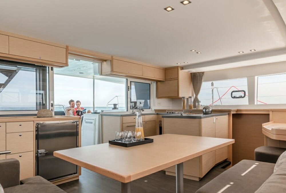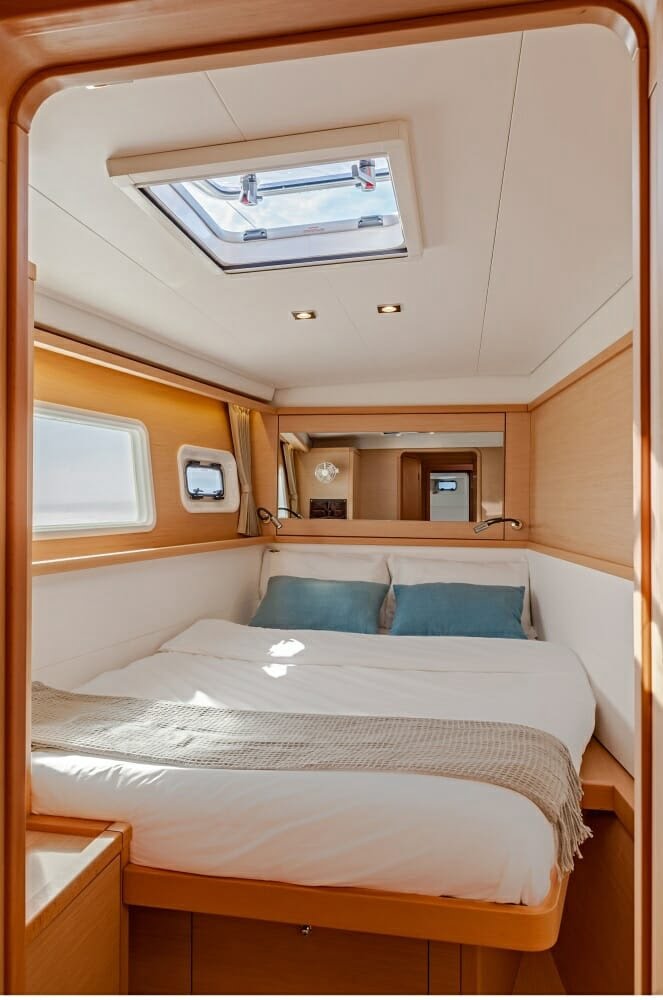 I suoi interni, raffinati e spaziosi, offrono comoditá e funzionalitá. Il Lagoon 450 dispone, infatti, di 4 cabine con rispettivi 4 bagni privati contraddistinti da luce naturale grazie alle ampie vetrate sugli scafi.