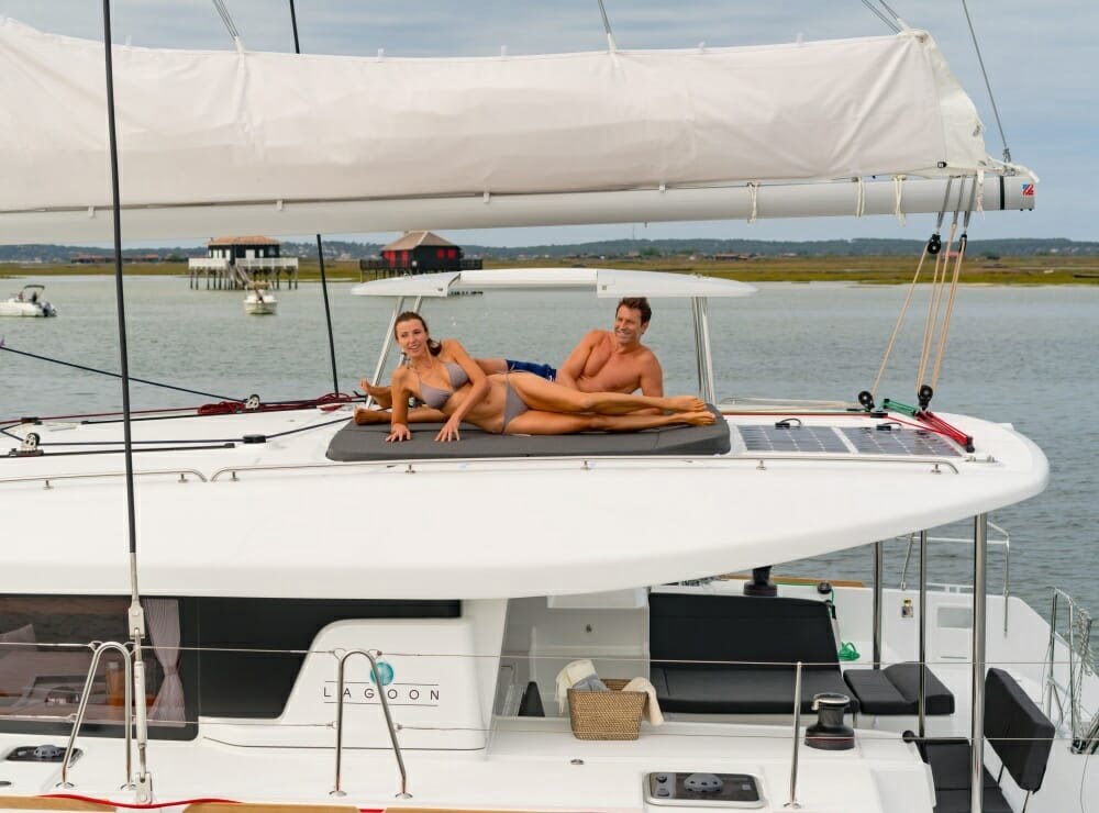 Il Lagoon 450 è un catamarano che soddisfa i desideri degli armatori che vogliono godersi il comfort di un catamarano da 45 piedi in una versione più tradizionale, con una timoneria sulla paratia al posto del flybridge.