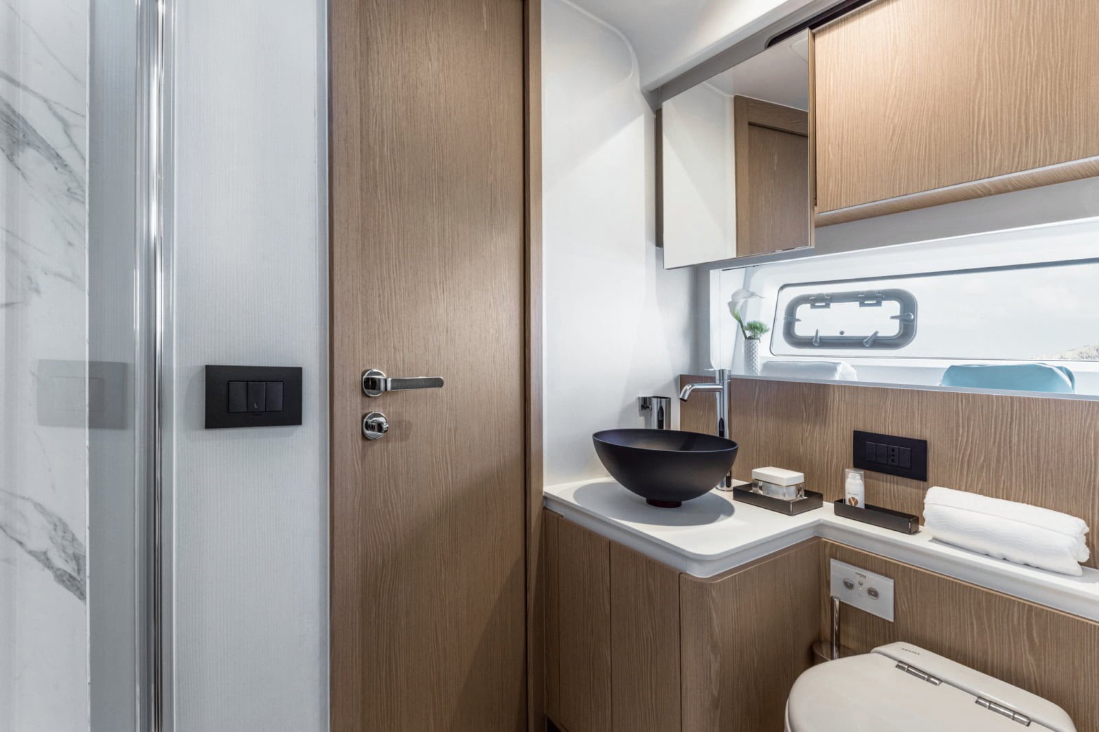 • Climatizzazione: Impianto di aria condizionata potenziato (fino a 60.000 BTU) con controllo separato nelle cabine e nel salone.
